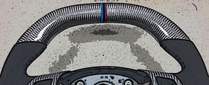 Als Alternative bieten wir eine "PS-Carbon Einlage" im unteren Bereich auf 4 -und 7 Uhr des Lenkrades an. Es wird auf dem Leder oder Alcantara angebracht und kann mit oder ohne 12 Uhr Markierung bestellt werden.