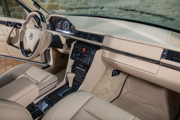 Hier entstand der 500 E nun also. Mit 326 PS und 480 Nm war er beinahe doppelt so stark wie der darunter platzierte, sechszylindrige 300 E (180 PS / 255 Nm). Quell von so viel Dampf war der 5,0-Liter-M119-V8 aus dem 500 SL der R129-Baureihe. Von diesem Roadster-Bruder stammen auch die Bremsanlage und das Fahrwerk. Die Viergang-Automatik fand im Zuge der Hersteller-Kooperation übrigens später auch den Weg in den Porsche 928.