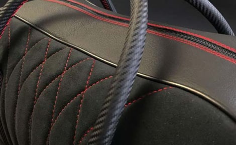 ein. Dieser Vorgang benötigt sehr viel Fingerspitzengefühl, da mit hochwertigen Materialien, wie beispielsweise feinstem Nappaleder, Carbon oder Alcantara gearbeitet wird.