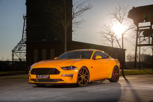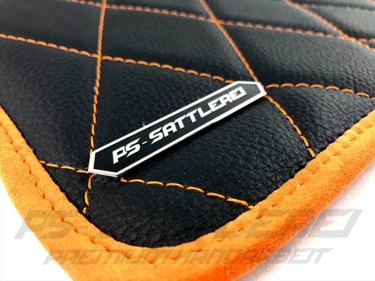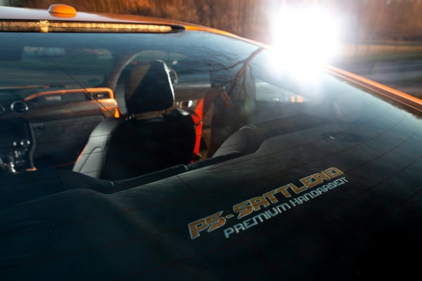 Die PS-Sattlerei entwarf und realisierte eine gleichermaßen edle wie farbenprächtige Wohnlandschaft, die billig wirkende Kunststoff-Oberflächen – und davon weist der Ami werksseitig bekanntlich eine ganze Menge auf – aus dem Cockpit verbannt. Statt ihrer finden sich Kombinationen aus schwarzem Nappaleder, wie es auch bei der britischen Nobelmarke Bentley Verwendung findet, schwarzem Alcantara sowie leuchtenden Alcantara-Akzenten in Mango-Orange. Vernäht wurde das von der PS-Sattlerei als „PSS GT-X“ bezeichnete Innenraumdesign mit orangefarbenem Garn und großflächig sorgen handgefertigte Diamant-Steppungen für noch mehr Exlusivität...